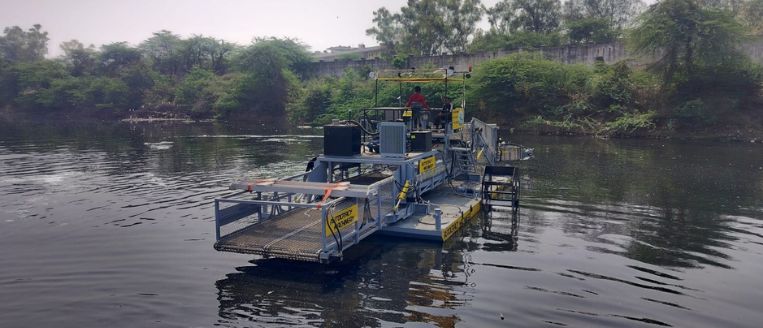 Rudra AquaMax is designed as a high‑capacity floating trash removal that also handles aquatic weeds and surface debris. It’s built to operate in both still and flowing water, making it versatile for mixed‑type pollution challenges